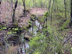Joes Creek, a branch of Stinking River, has a beautiful steep stone bluff to the east of it. This is our boundary with another farm. It is a very pretty creek. There are about two acres of pretty bottom land on our side of Joes Creek.