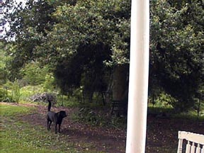 | View from French doors patio to the N. You can also see the gazebo, chicken house, and garage/workshop/barn. |