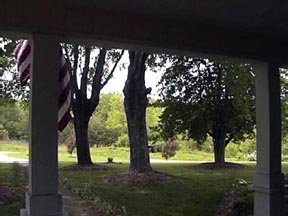 | View from front porch looking W The front walk is lined with ivy year round with daffodils and tulips in the spring. |